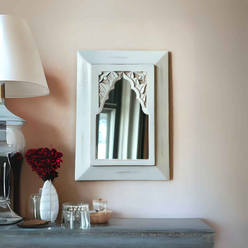 Elevate your decor with our handcrafted wooden carved wall mirror. Meticulously designed, this mirror combines craftsmanship and artistry, featuring intricate wood carvings that add a touch of sophistication to any space. Reflecting both style and elegance, it effortlessly enhances your wall, becoming a timeless centerpiece in your home. Available in a variety of colors to suit your home decor preferences and style.